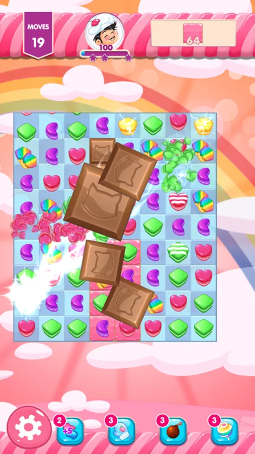 Swap, match and crush three or more of the same candies to clear the levels! Blast them together and make the powerful booster to complete missions. There are more cheer in this puzzle for you which can be discovered in this sweet candy land! Quick thinking and smart moves are rewarded with delicious rainbow-colored cascades explosions and tasty sugar combos!