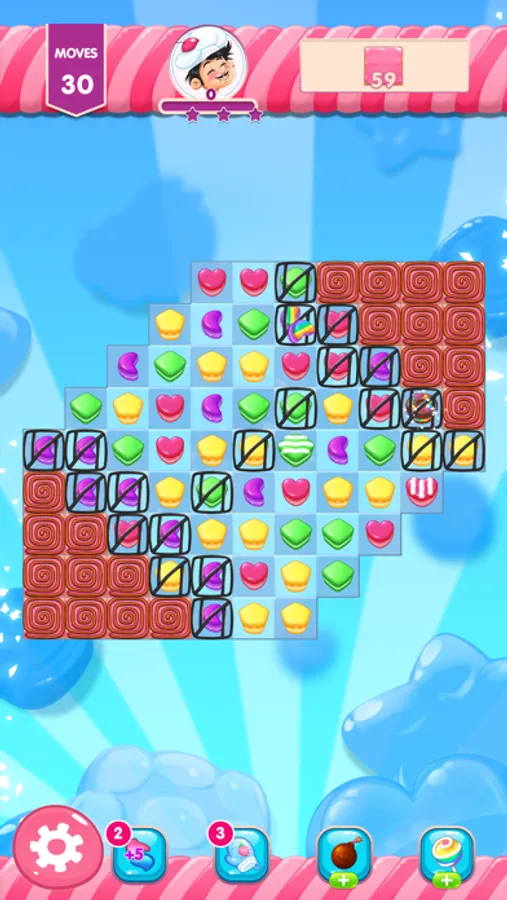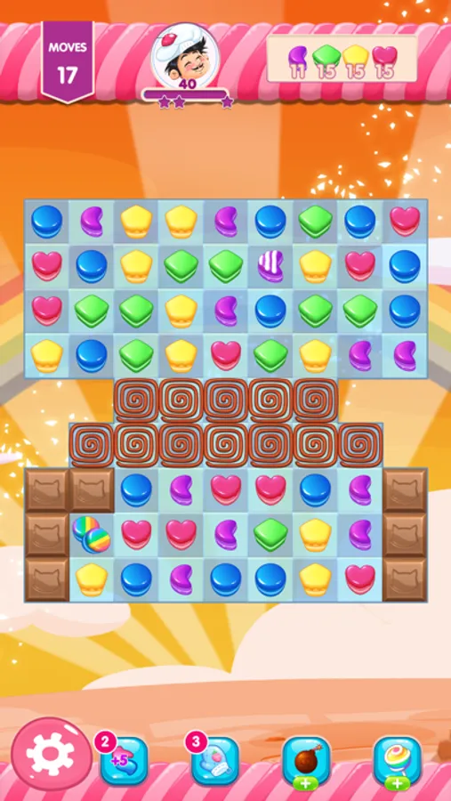 - Gather enough candies to win before you run out of moves