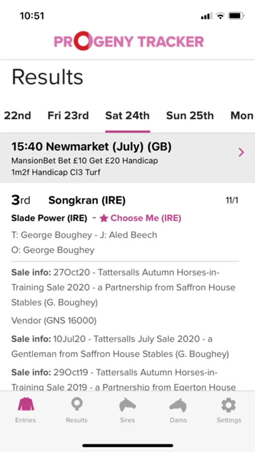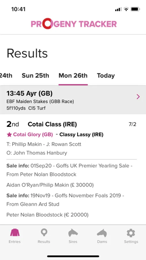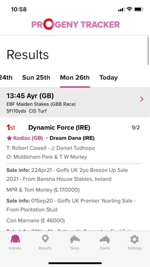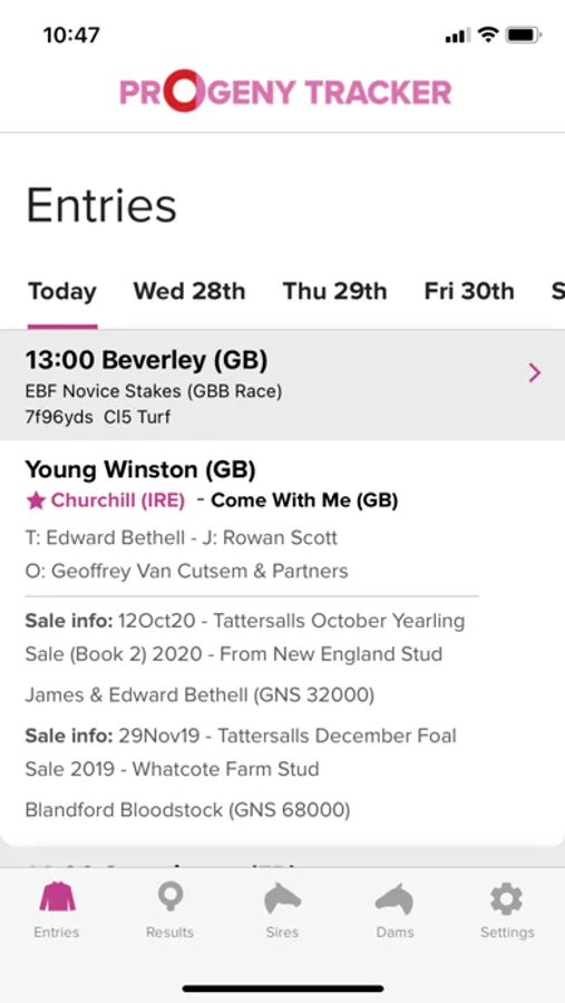 Progeny Tracker is the first horse tracker of its kind and brings a unique new product to the bloodstock industry. The Progeny Tracker allows you to track unnamed horses by tracking any sire and dam in the world. The app notifies you of any runners by your tracked sires/dams and full racecards are visible within the app, along with in-depth horse profiles detailing race record and pedigree. The app also brings you sales information for all progeny of your tracked sires/dams. The app is perfect for tracking young horses sold at the sales (by tracking the dams) and for keeping up-to-date with the progress of first season sires, and much more. The Progeny Tracker app is brought to you by Racing Post Bloodstock and sponsored by Goffs.