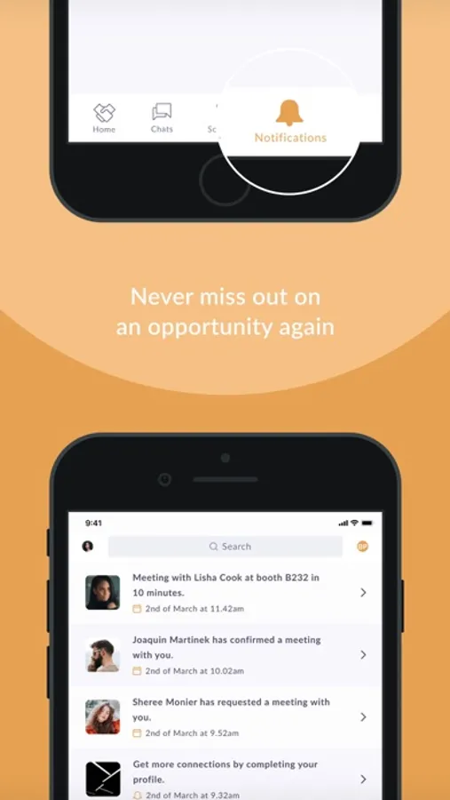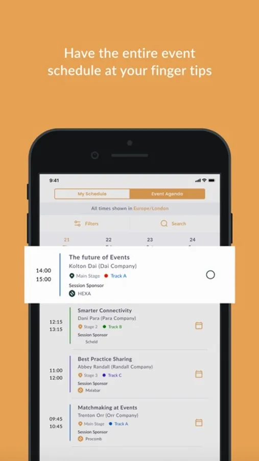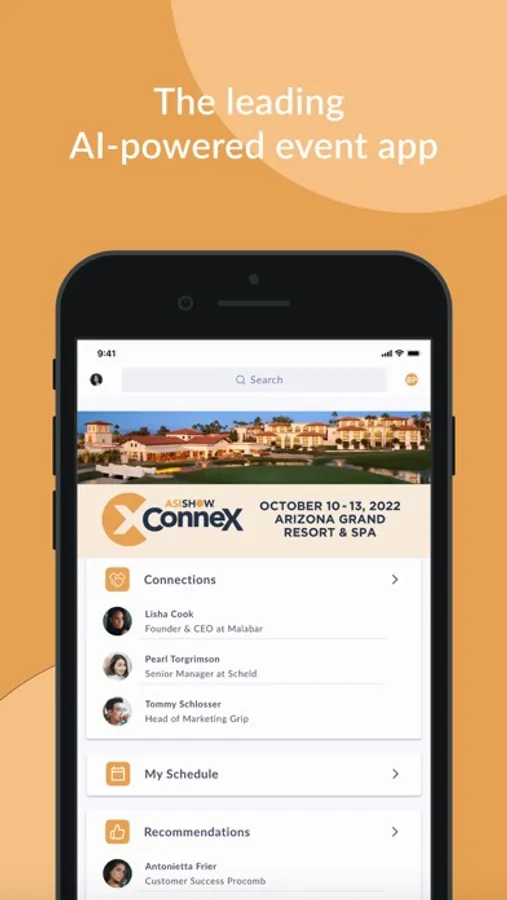 show. It includes attendee profiles, daily agendas, personal schedules and