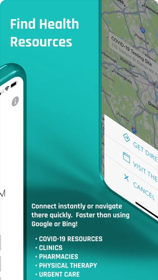 With Explore Nearby options, you can locate healthcare resources in a given region with just a few taps - much more accessible than you can do with Apple or Google maps! In addition, you can navigate to the location or the websites for urgent healthcare needs.