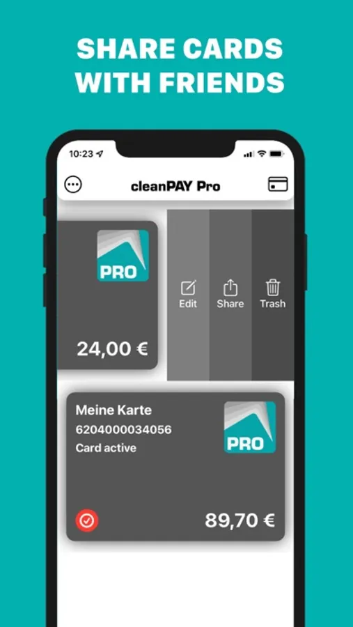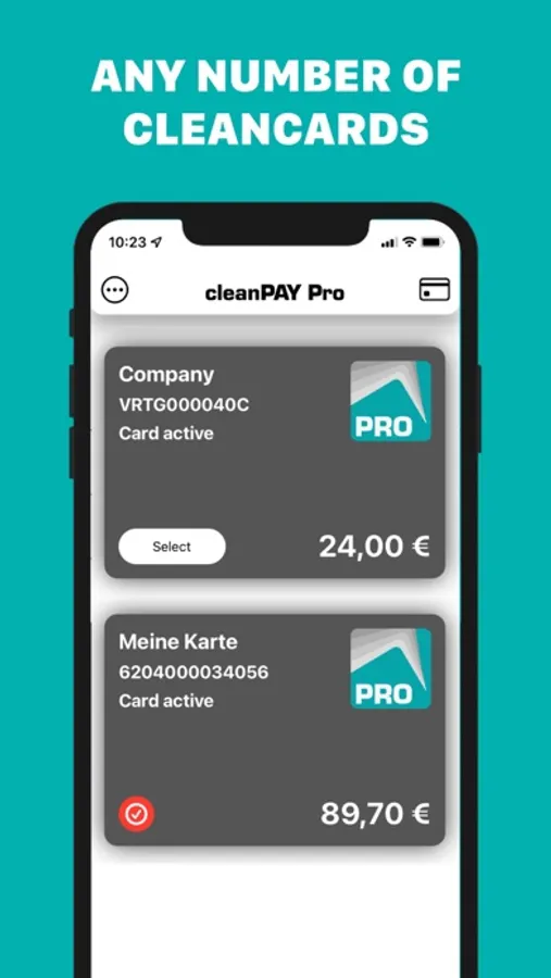 With many useful functions and a clear, modern and very tidy design, this version raises the bar. With cleanPAY Pro it is now very easy to manage any number of cleancards. Simply capture your existing plastic card in the blink of an eye and use all the associated benefits on your cell phone. Integrated security functions protect you from card misuse.