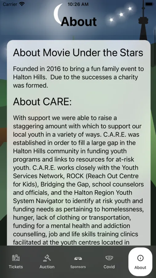 This is the official app of Halton Hill's - Movie Under the Stars. Use this app to get more information about the event and view our amazing Sponsors. There are quick links to the tickets website and information about our Charity.