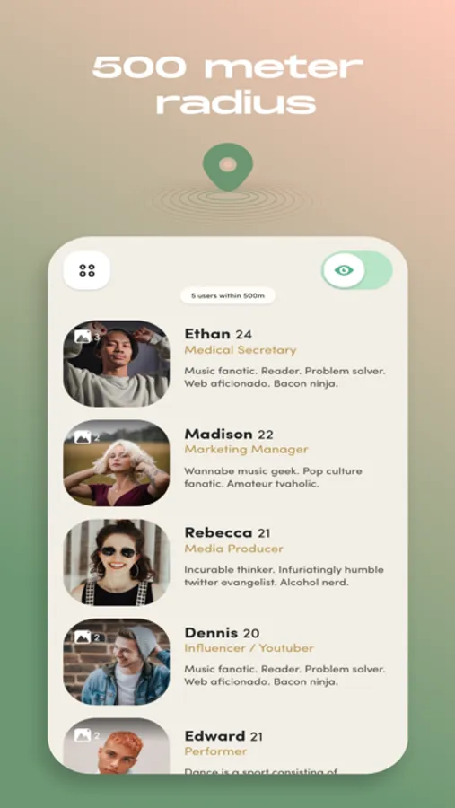 Our aim? To have you use this app as a tool to help you step out and dive into real-life experiences more often, making new friends, finding a date or inviting people around you to a party! Zown is designed to bridge the digital divide and push you to engage in human interaction, creating meaningful connections in a tech-driven world.