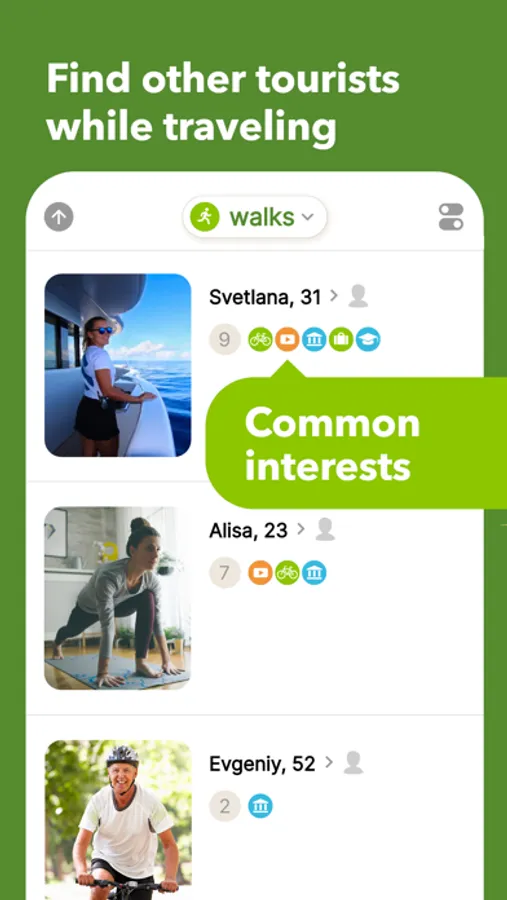 - To search for travel companions, groups and walks, set the corresponding search filter.