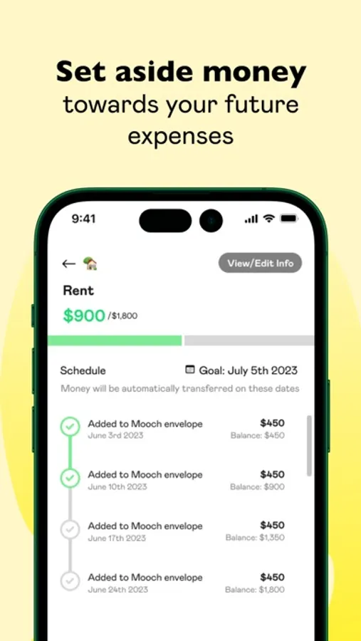 1) Envelope Budgeting Made Easy: Simplify your finances with automated envelopes in Mooch. We handle the transfers, making budgeting hassle-free.