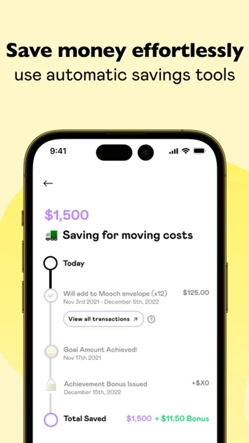 10) Automated Savings: Reach your financial goals effortlessly with Mooch's automatic savings feature. Save money without even thinking about it, thanks to our efficient wallet app.