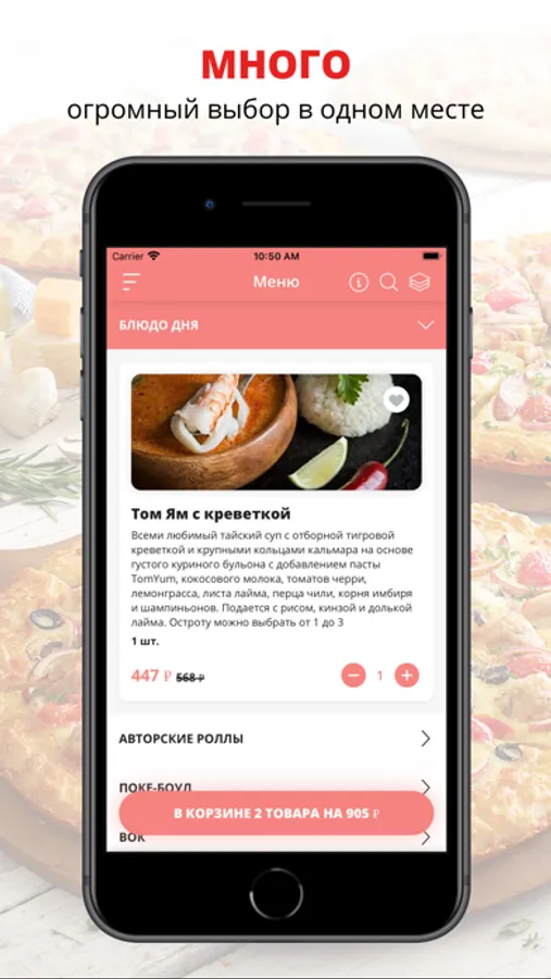 Наша команда старается приятно удивлять своих гостей из раза в раз, оставляя шлейф приятных вкусовых (и не только) воспоминаний. В ассортименте представлен большой выбор роллов, пиццы… и не только!