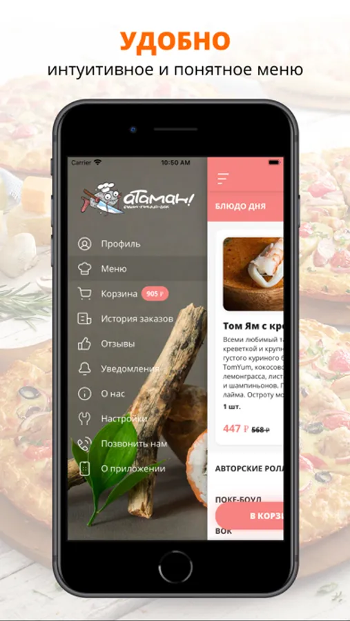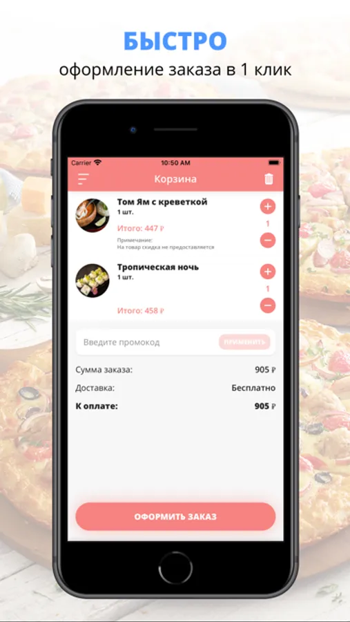 Скачивайте наше приложение, оформляйте заказ и наслаждайтесь любимой едой, где бы Вы ни были! Приятного аппетита!