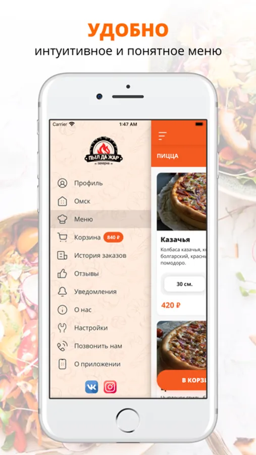Скачивайте наше приложение, оформляйте заказ и наслаждайтесь любимой едой, где бы Вы ни были! Приятного аппетита!