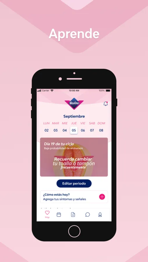 Notifica datos de interés personalizados y generales que apoyan su rutina diaria, y además, responde inquietudes por parte de profesionales, sin tabúes, ni tapujos, guiando de una manera amigable, a las mujeres desde la primera menstruación hasta la pre menopausia.