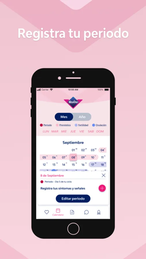Con V-App será mucho más fácil hacer seguimiento a tu ciclo menstrual de una forma precisa y oportuna. Además podrás recibir consejos y tips de Nosotras según la época de tu calendario menstrual. Dudas sobre la llegada de tu periodo, qué es el SPM y cómo sobrevivir a esos días difíciles de tu ciclo donde te sientes bajita de ánimo y que no quieres hacer nada, todo eso lo encontrarás en V-App.