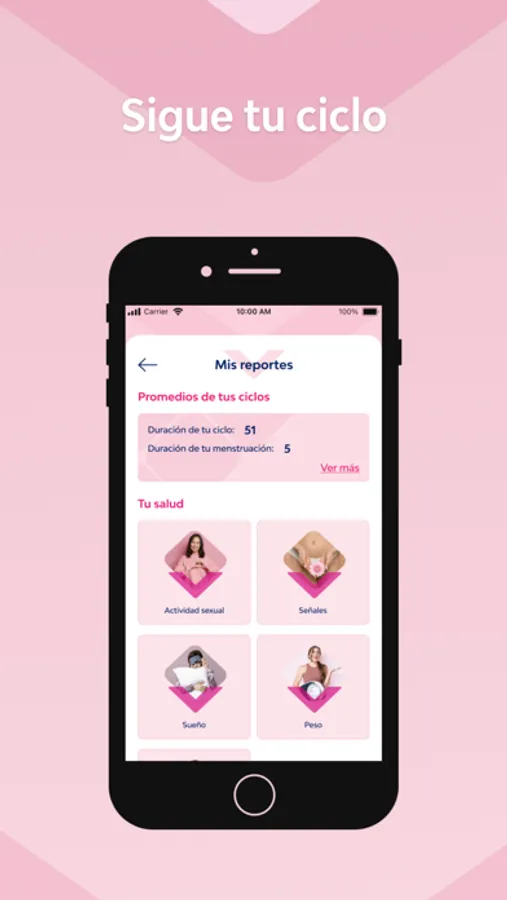 Según los datos que registres en V-App sobre tu edad, preferencias y ciclo menstrual, te enviaremos artículos y tips personalizados para acompañarte de forma integral en tu día a día, con temas como:
