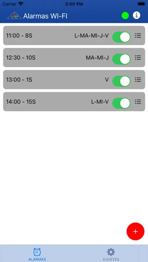- Capacidad de almacenamiento de hasta 100 alarmas.