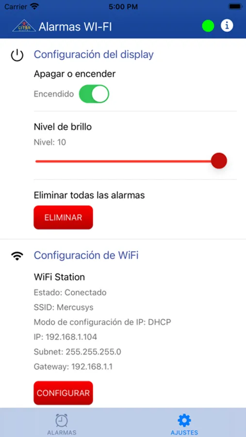- Capacidad de conectarse a una red WIFI para el servicio NTP.