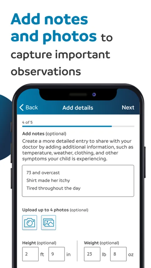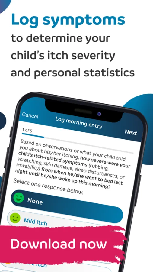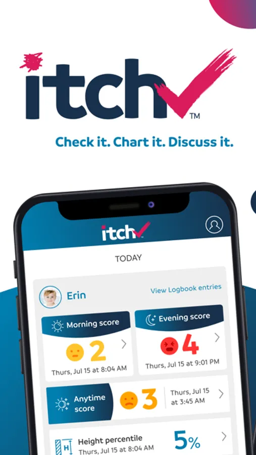 • Detailed charts: See your child’s itch severity and growth patterns against standard percentiles