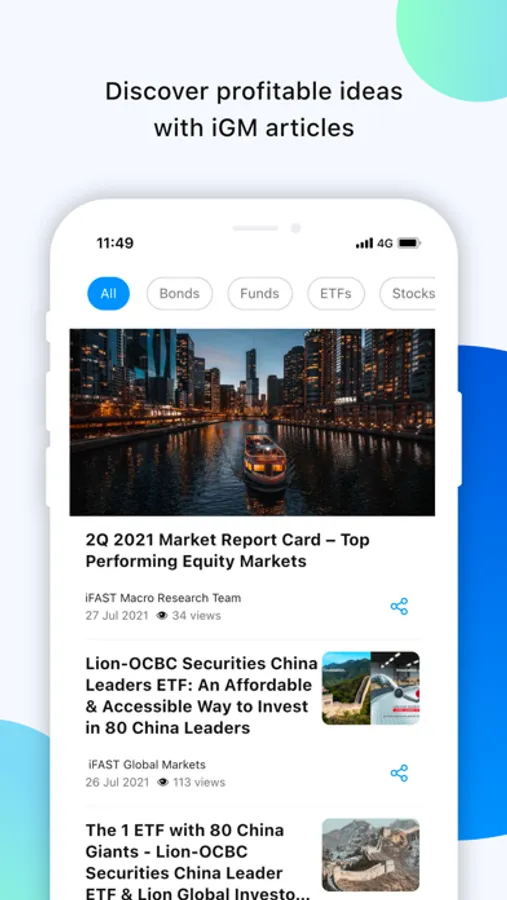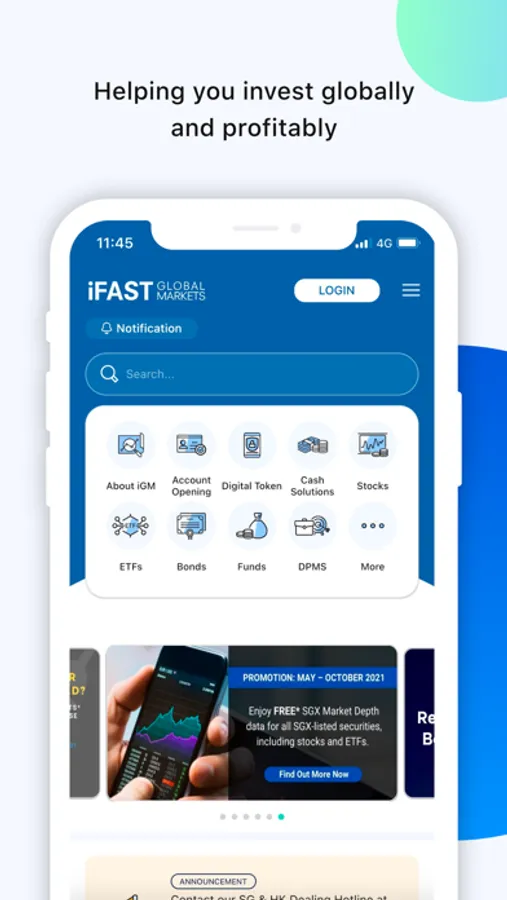 The iGM app lets you invest in Stocks, Bonds, Exchange Traded Funds (ETFs) and Unit Trusts with the flexibility of a self-directed investment account. It comes with access to professional investment advice from a dedicated wealth adviser.