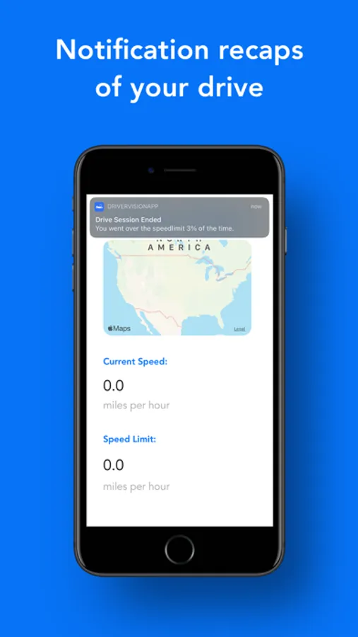 While you drive, Driver Vision will automatically keep track of your location, speed, and road’s speed limit. At the end of your drive, the app will send out a notification with the percentage of time you were speeding.