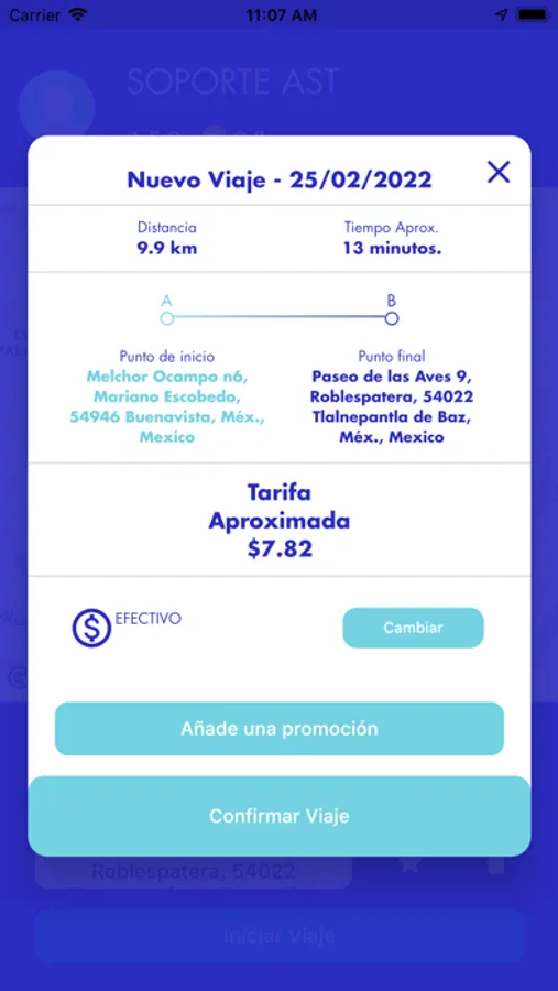 Una vez que el conductor llegue por ti, tu viaje comenzará, y podrás montar el progreso de este, permitiéndote e saber si problemas cuánto es el tiempo que te falta para llegar a tu destino.