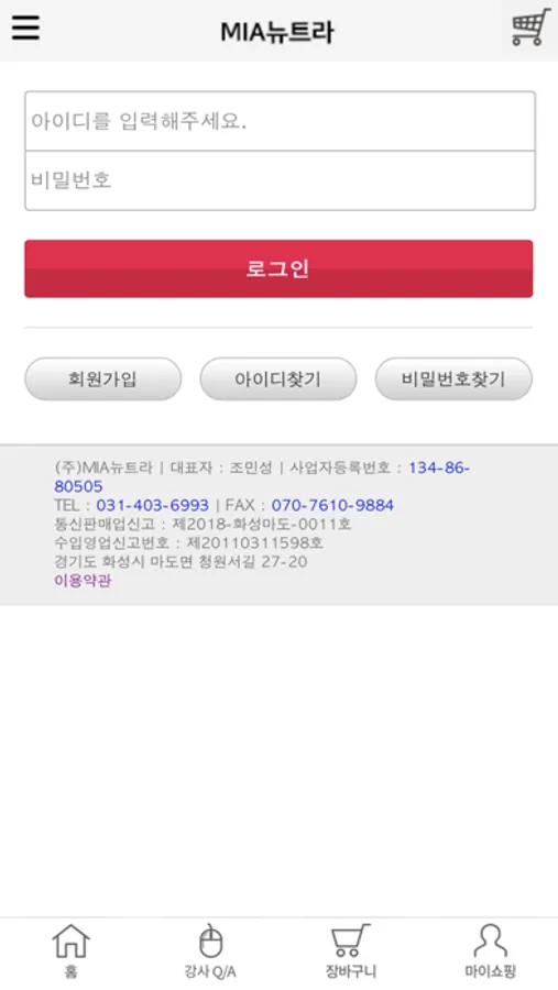 (주)MIA뉴트라 앱입니다.