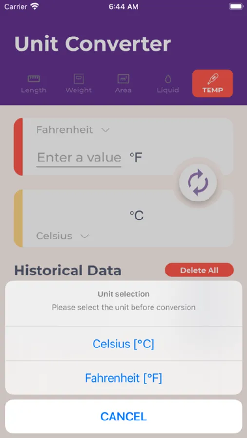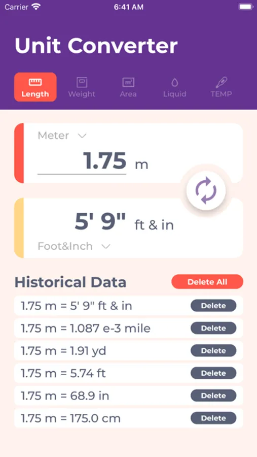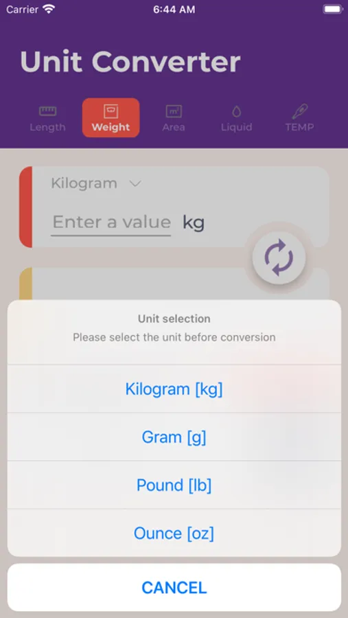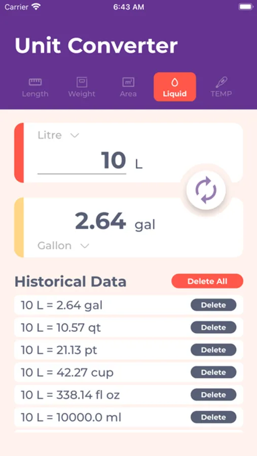 Select the category of the unit you want to convert at the top of the screen, enter the value, and you can convert immediately.
