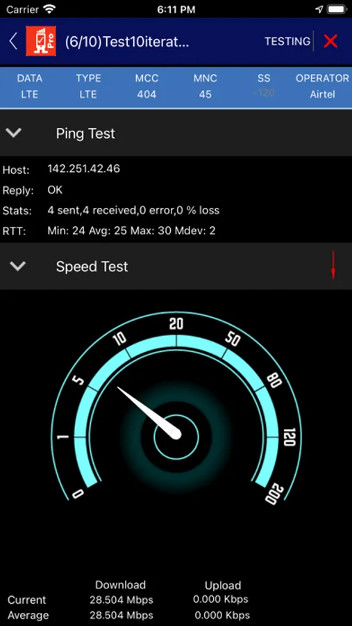 • Network information such as MNC, MCC, Operator name, and Network Data connection type is indicated on the APP Identify ping (latency) on 2G, 3G, 4G (LTE),5G, Wi-Fi, and CDMA network