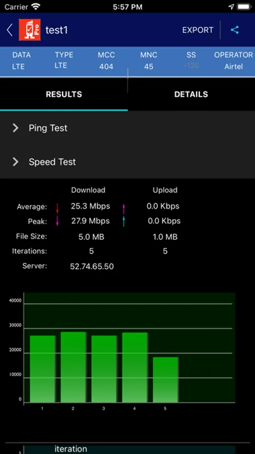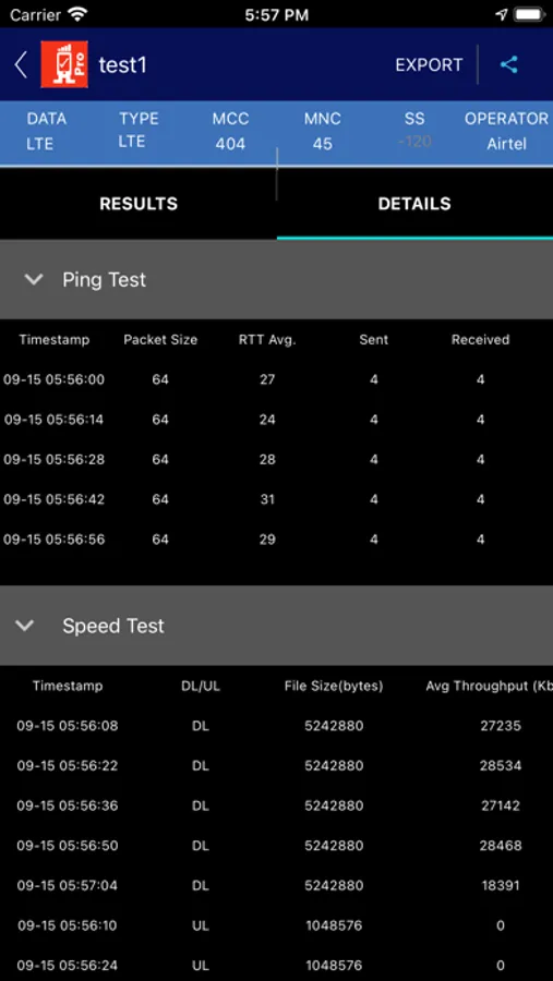 • Detailed information about the tests (measured value of Download, Upload, and Ping Tests) can be exported to excel format