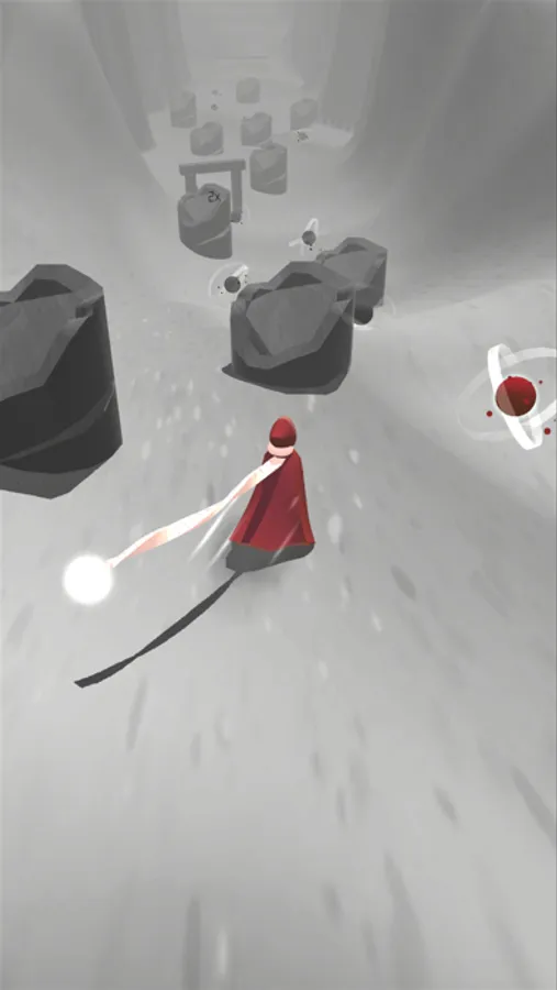 Surf, jump and collect! Run with the red one and grow the scarf longer!