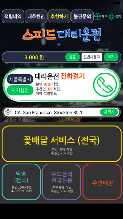 - 추천한 친구가 대리호출시 3%도 내게로 적립~