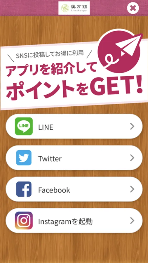 漢方錦のアプリはSNSを通じてお友達に紹介する事ができます。
