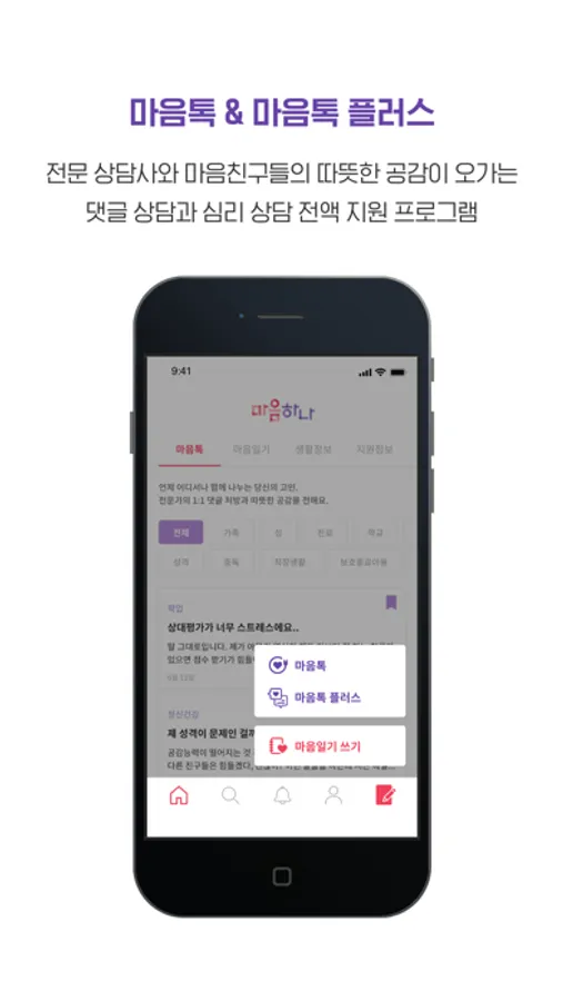 '마음하나'를 통해 익명으로 나누는 고민상담과 따뜻한 위로를 느껴보세요!