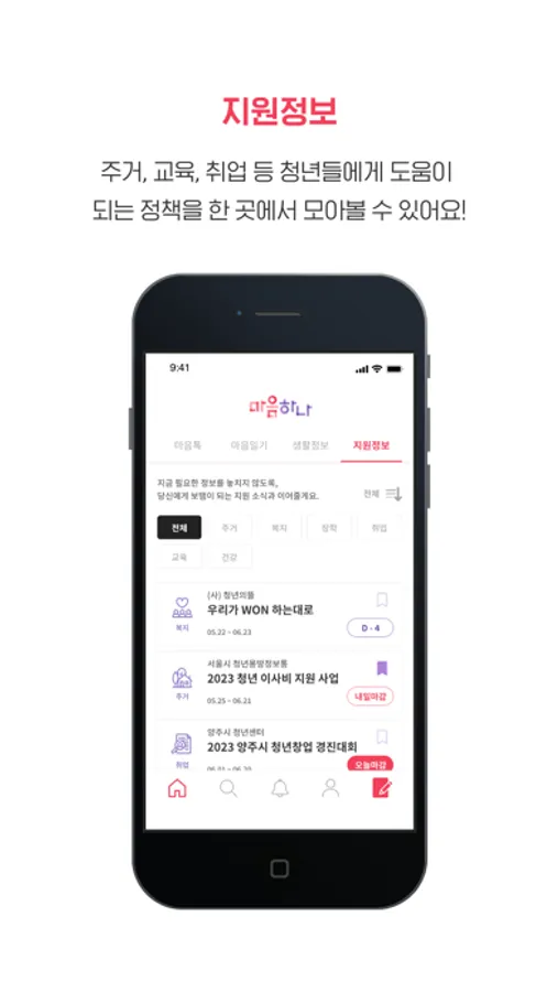 주거, 교육, 취업 등 청년들에게 도움이 되는 정보를