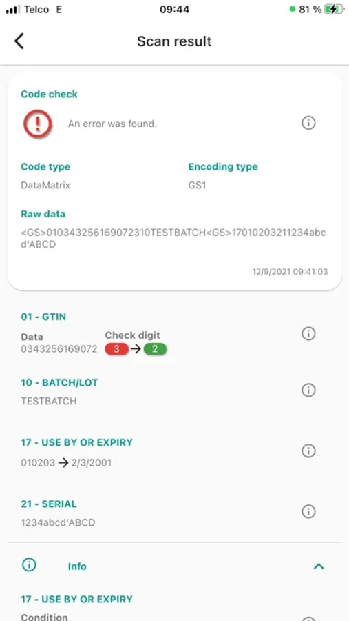 This app has been developed from scratch to support iOS devices now. It contains many improvements, such as a new GS1 and IFA data parser and validator. In addition, it is possible to view detailed information about the detected identifiers.