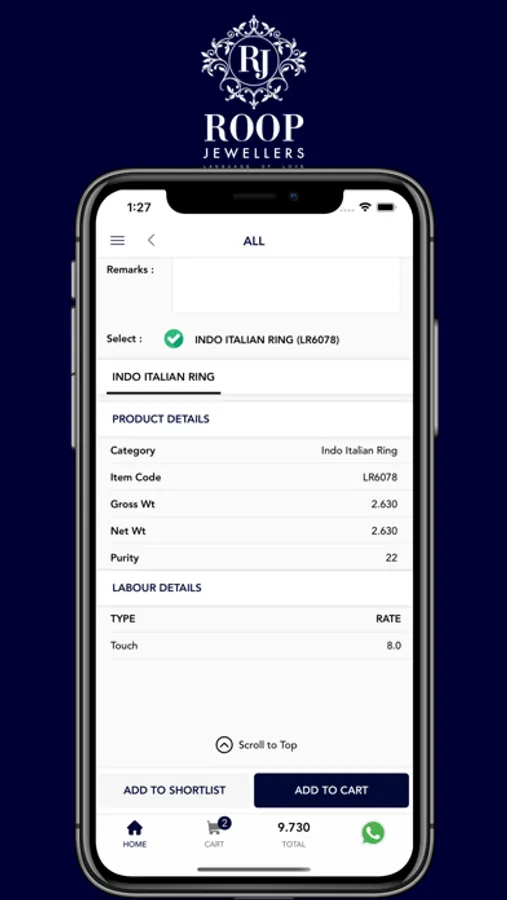 *In App Notification- Don't miss an offer with Roop Jewellers App. With in-build mobile notification feature, you will be amongst the first ones to know about the latest collection and offers.