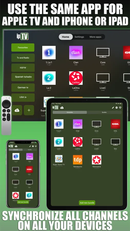 We have added iCloud so that you have the iOS applications (iPhone and iPad) and Apple TV synchronized. Once you load your television and radio channels on one device, you will have them added to your other devices automatically without having to do anything.