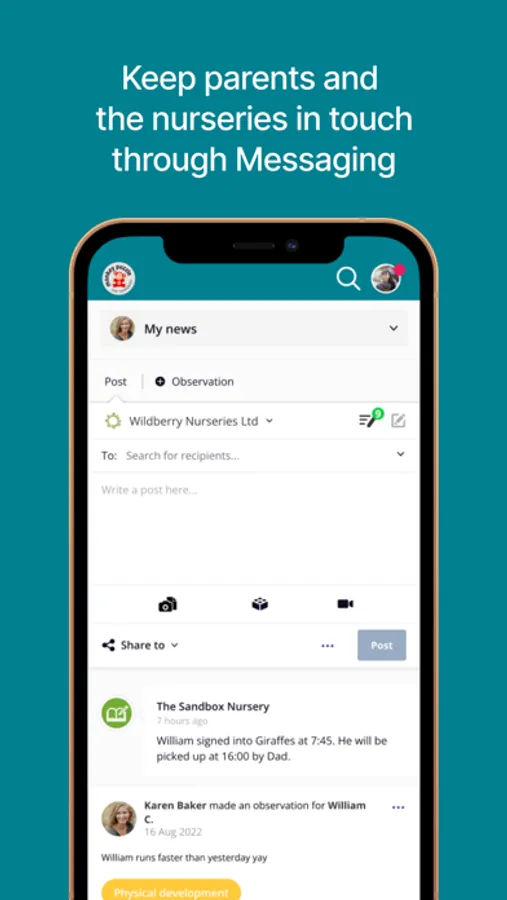 The Monkey Puzzle app keeps you in the loop with real time updates on your child’s time at Monkey Puzzle Day Nurseries. Here you will have your personal news feed sharing your child’s activity, their meals, sleeps, and successes. This app connects you with the carers looking after your child through the messaging feature giving you great peace of mind.