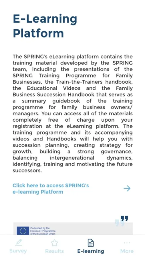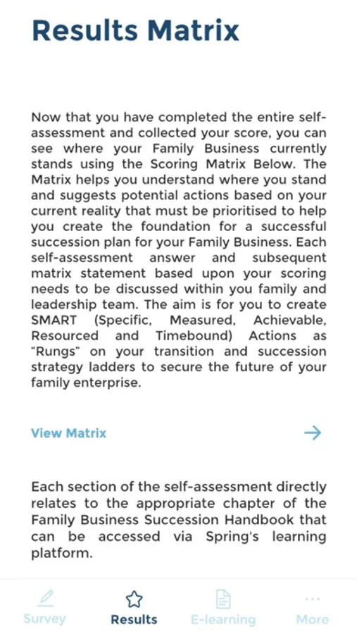 The app was created by the SPRING project to serve as a user-friendly self-assessment tool for family businesses