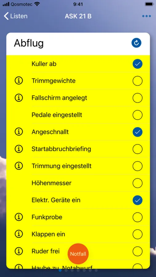 Glidecheck ist ein Arbeits- und Anwendungstool zur Flugsicherheit. Erstelle deine Checklisten für Flugzeuge, den Flugbetrieb und die übrige Organisation. Oder nutze die bereits erstellten Listen, ändere sie für deinen Bedarf oder ergänze sie in Wort und Bild. Teile die Listen in deiner Haltergemeinschaft oder deinem Verein damit alle davon profitieren und auf dem gleichen Stand sind. Nutze Glidecheck als Wissensspeicher sowie zur Vermittlung von Kompetenz und deren Erhalt. Mit Glidecheck hast du wichtige Informationen immer zur Hand. Mach mit die Flugsicherheit zu steigern indem du, deine Haltergemeinschaft und dein Verein zum weiteren Ausbau des Inhalts von Glidecheck beitragt. Glidecheck schränkt dich nicht ein, macht keine verbindlichen Vorgaben. Du als Pilot, deine Haltergemeinschaft oder dein Verein entscheiden wie ihr Glidecheck nutzt und davon profitiert. Mit Pushnachrichten erreicht dich Glidecheck mit wichtigen Informationen.