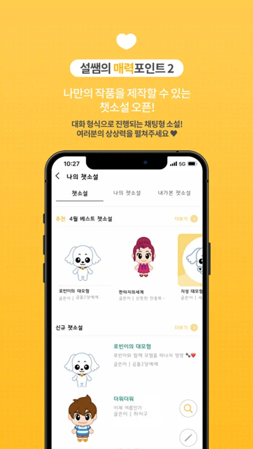 나만의 챗소설도 쓰며 포인트까지 놓치지 말아요~
