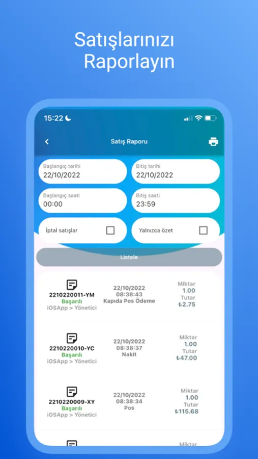 BenimPOSüzerinden tanımladığınız personelleriniz ve yönetici hesabınız ile uygulamayı indirerek telefonunuzun kamerası ile satışlarınızı yapabilirsiniz. Yapılan satışları BenimPOS web ve masaüstü uygulamalarından görüntüleyebilir hangi personeliniz hangi müşteriye mobil uygulama ile veya site üzerinden ne zaman ne satmış görüntüleyebilirsiniz.