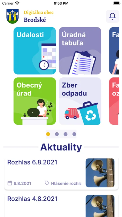 Na jednom mieste aktuality, udalosti, informácie z obecného úradu, počasie, história, farské oznamy, fotogaléria, kalendár zberu odpadu, užitočné návody, zasielanie dôležitých notifikácií a všetky ostatné informácie pre občana.