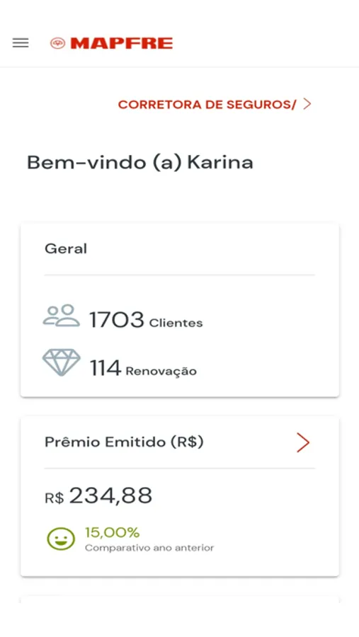 Feito para você, parceiro MAPFRE, você tem a simplicidade para realizar a gestão dos clientes pelos detalhes da apólice, endosso, você pode alterar seus dados cadastrais, gerir seus clientes e acompanhar suas vendas. Tudo isso, na palma das suas mãos.