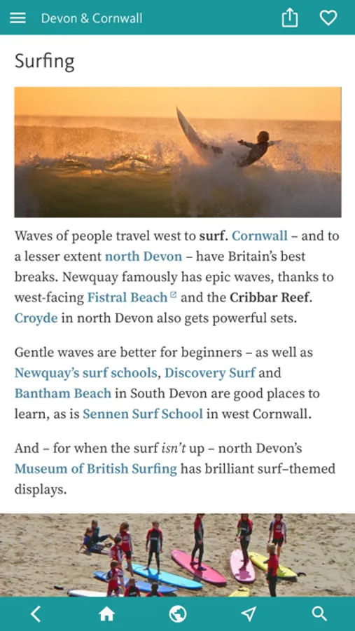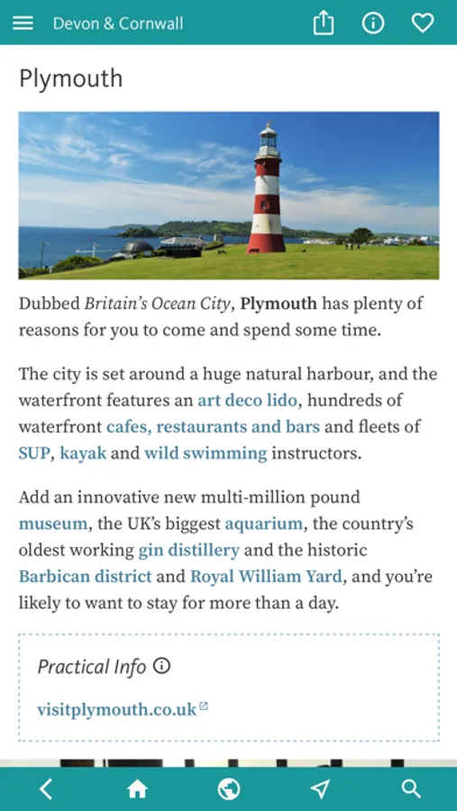 Or, if you have particular INTERESTS or ACTIVITIES in mind, then you might just dive straight in to the this section of the app. It’s designed to give you the low-down on various themes, so if you’re travelling with KIDS; want an overview of WATER SPORTS; or want to tour landscaped GARDENS or HISTORIC HOMES – you'll find dedicated sections point you in the right direction. Other categories include BEACHES, CYCLING, HISTORY and WALKING.