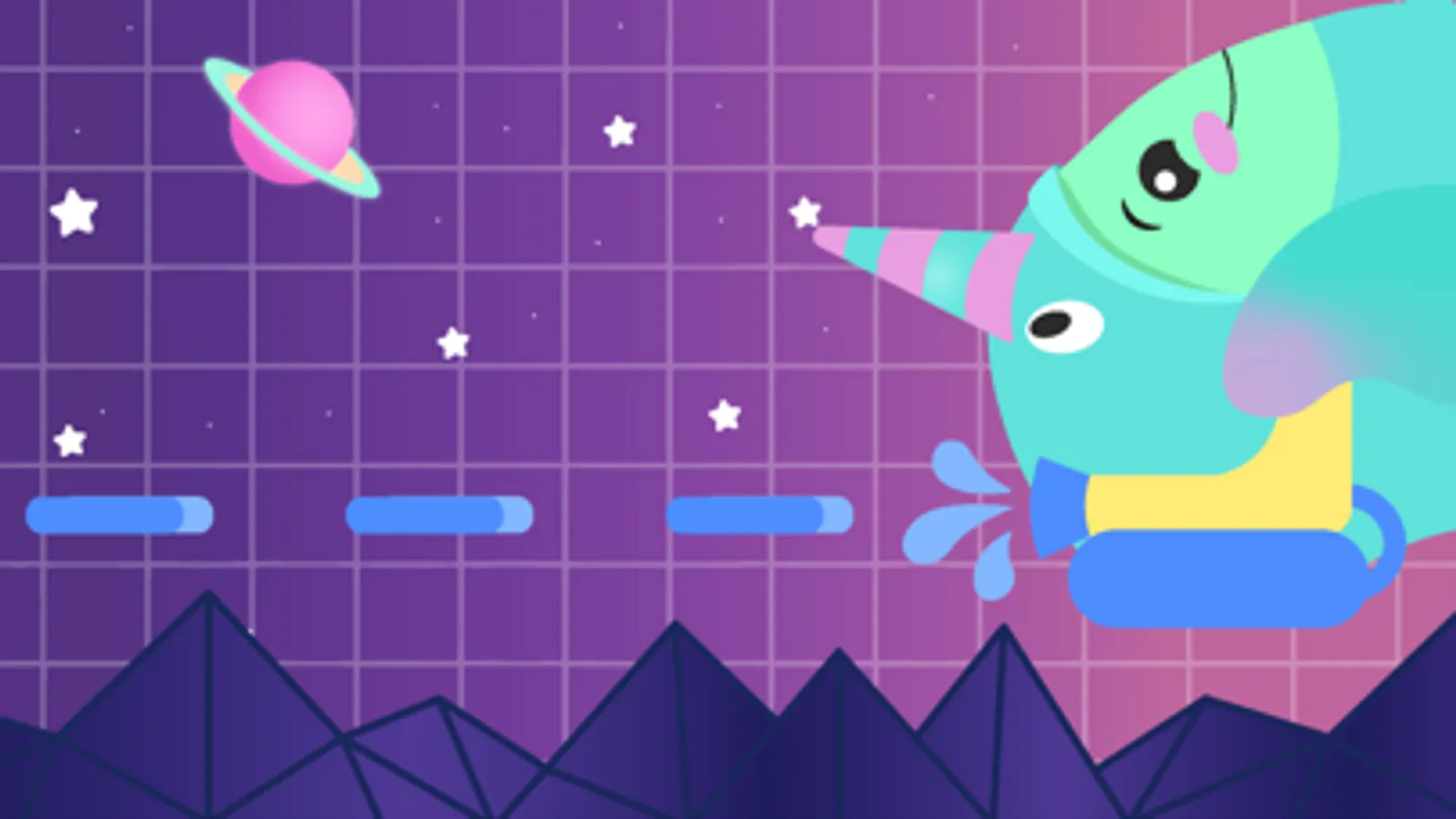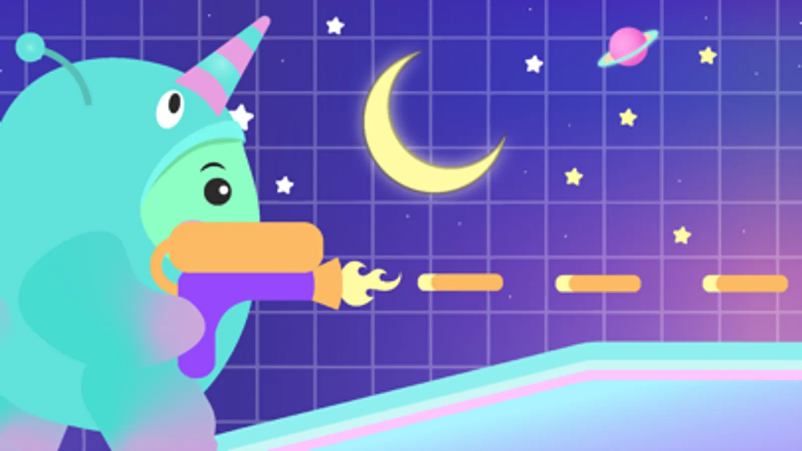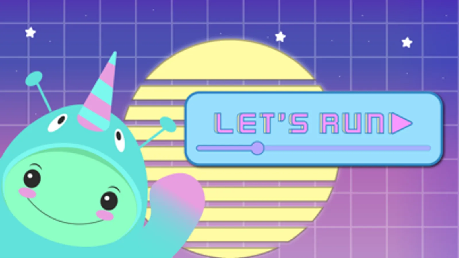 A spaceship with only one little cute alien crashed into a planet in an unknown galaxy, where everything is bright and neon.