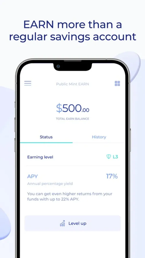 Earn over 10x more than a regular savings account: the EARN program lets you tap into the high yields available in modern decentralized finance (DeFi), with reduced risks and none of the complexity.