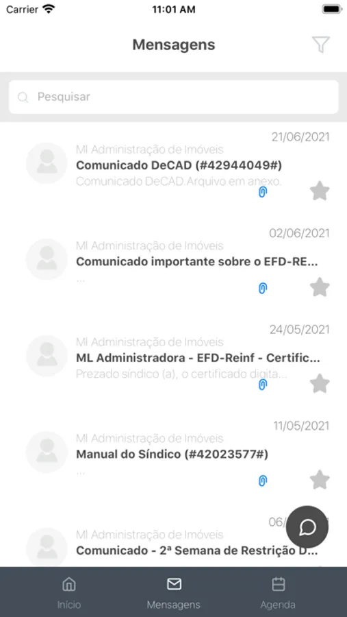 Visualização de eventos e agendas técnicas do condomínio (limpeza de caixa d´água, dedetização, etc)