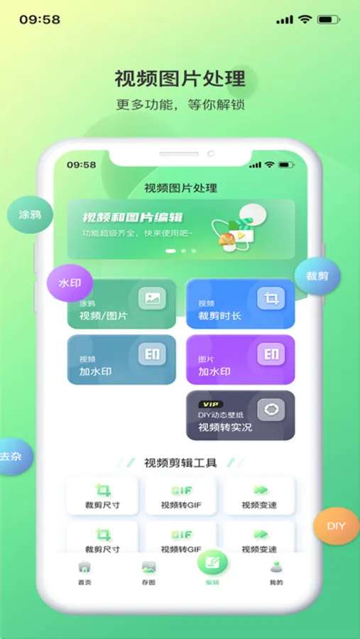 视频和图片编辑页面,可按自己需求对下载的素材进行二次修改编辑