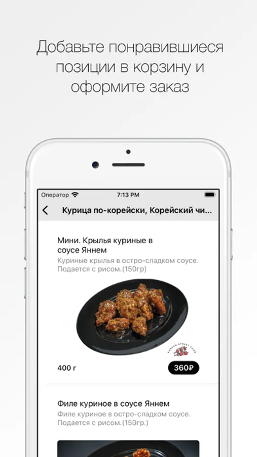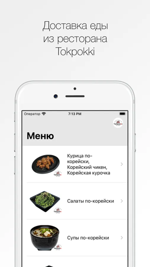 Как сделать заказ в приложении “Tokpokki”: выберите понравившиеся позиции из меню, добавьте их в корзину и перейдите на экран оформления заказа (по нажатию на иконку корзины).