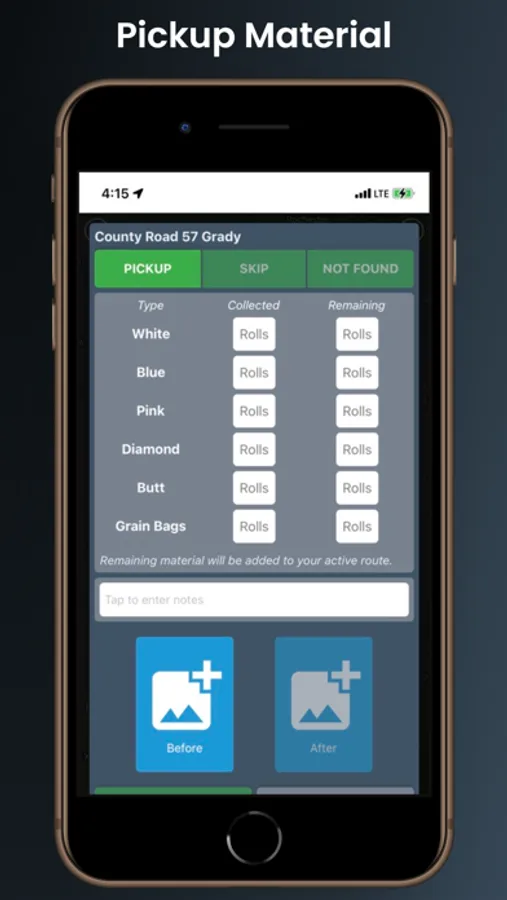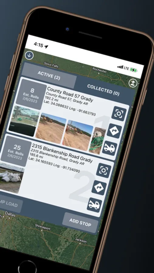 Rev Driver is an agricultural plastic collection logging tool. The app allows users to track their collection of spent plastic either through assigned routes (points with known plastic) or through independent routes called "empty routes" they start themselves. They are able to log the amount of plastic collected, the amount left in at a point, as well as notes about the condition of the area or particular stop.