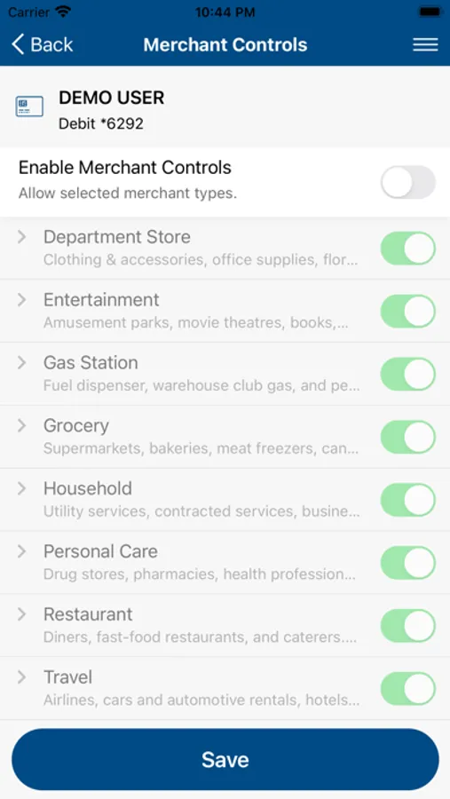 Toggle between “on” or “off” for those just-in-case moments when you are not sure if your card has been misplaced or stolen.